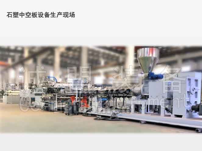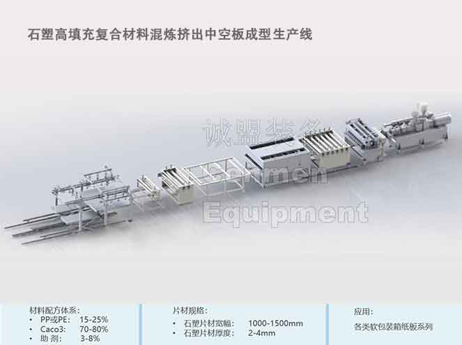 Stone-plastic High Filling composite material compounding extrusion hollow packing board forming production line;