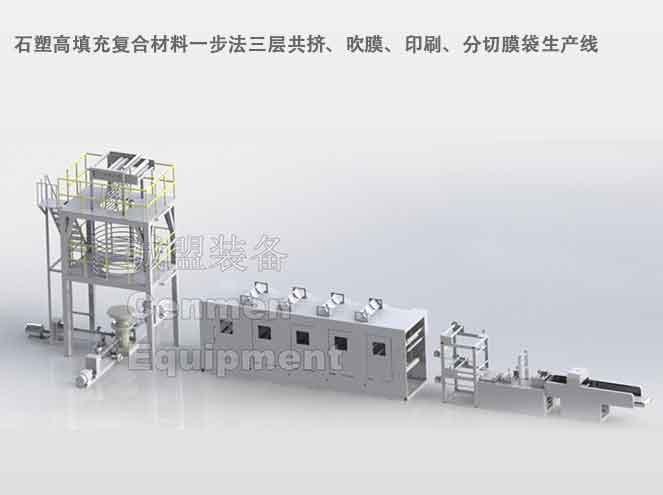 Stone-plastic High Filling composite material one-step method compounding co-extrusion, blowing, printing, slitting film bags forming production line;